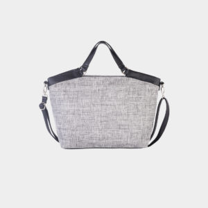 Zippered carry case on the top and silver hardware. Leatherette front pocket with magnetic closure. Double leather handles with a 5 “length Adjustable and adjustable shoulder strap in faux leather with a length of 13 in. Internal features are Roots print lining, zipper and open sliding pockets.