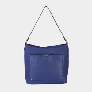 Zippered tote on the top with side attachment. Silver hardware. Featuring a contrasting 10 “double leather handles, zip front pocket, internal zipper lining, zip fastening and open sliding pockets.