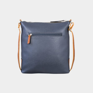 Cross shoulder bag with high zipper. Silver hardware. Front pocket with magnetic closure. Rear pocket with zipper. Adjustable shoulder strap in faux leather with a length of 14.25 “Internal features are Roots print lining, zip and open sliding pockets.