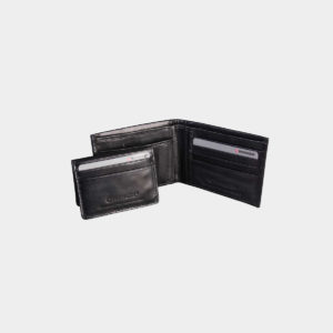 Wallet with multiple credit card slots. Made of imitation cowhide leather.
