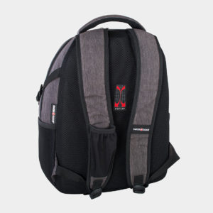 Polyester backpack. Suitable for most 17.3 “notebooks. Integrated multi-purpose organizer. Mesh side pocket for water bottle or other small items. Front pocket with quick access zipper. Reflective ornaments for added security.