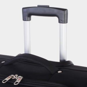 Made of durable ABS. The main compartments have self-releasing zippers that can be locked for added security. Retractable handle with push-button that locks into position when stretched. One handle on the top and one on the side for easy handling